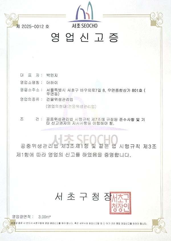 단순한 청소를 넘어, 공간의 가치를 높이고 그곳에 머무는 고객 여러분의 건강과