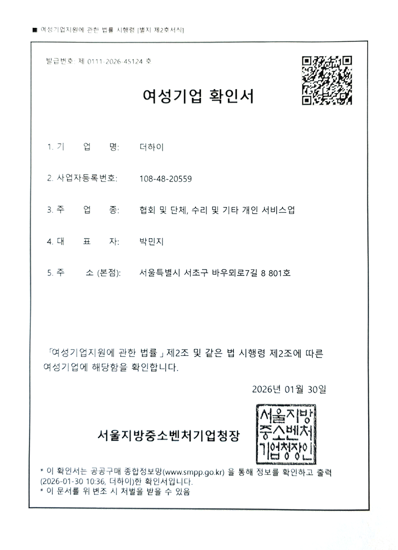 여성기업 등록확인증
