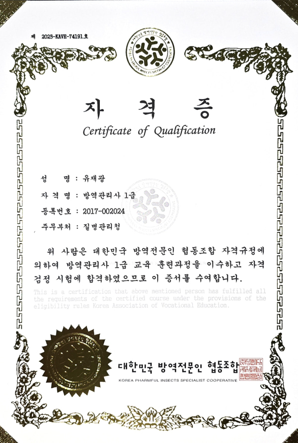 방역관리사 1급자격증