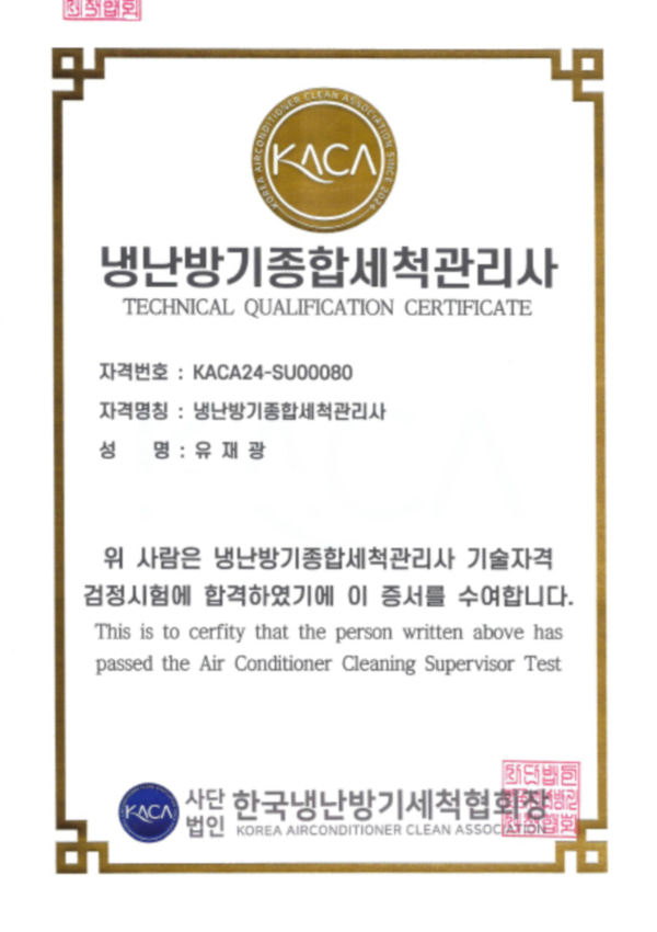 냉난방기세척관리사 자격증